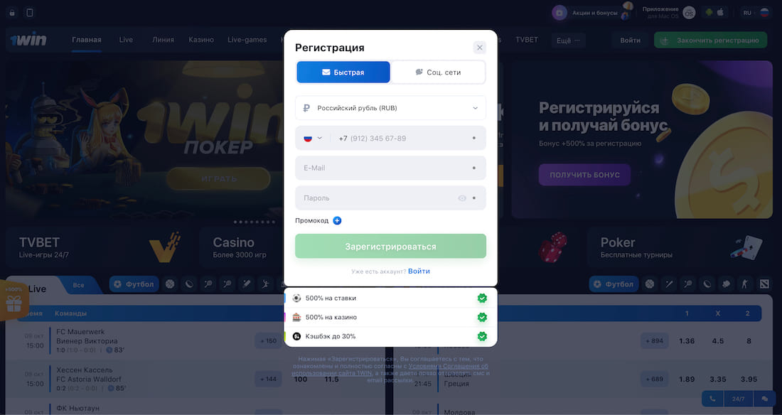 В БК нельзя использовать чужие персональные данные и создавать мультиаккаунты. Такие профили будут заблокированы вместе с наработками. Регистрация в букмекерской конторе 1Вин позволяет: